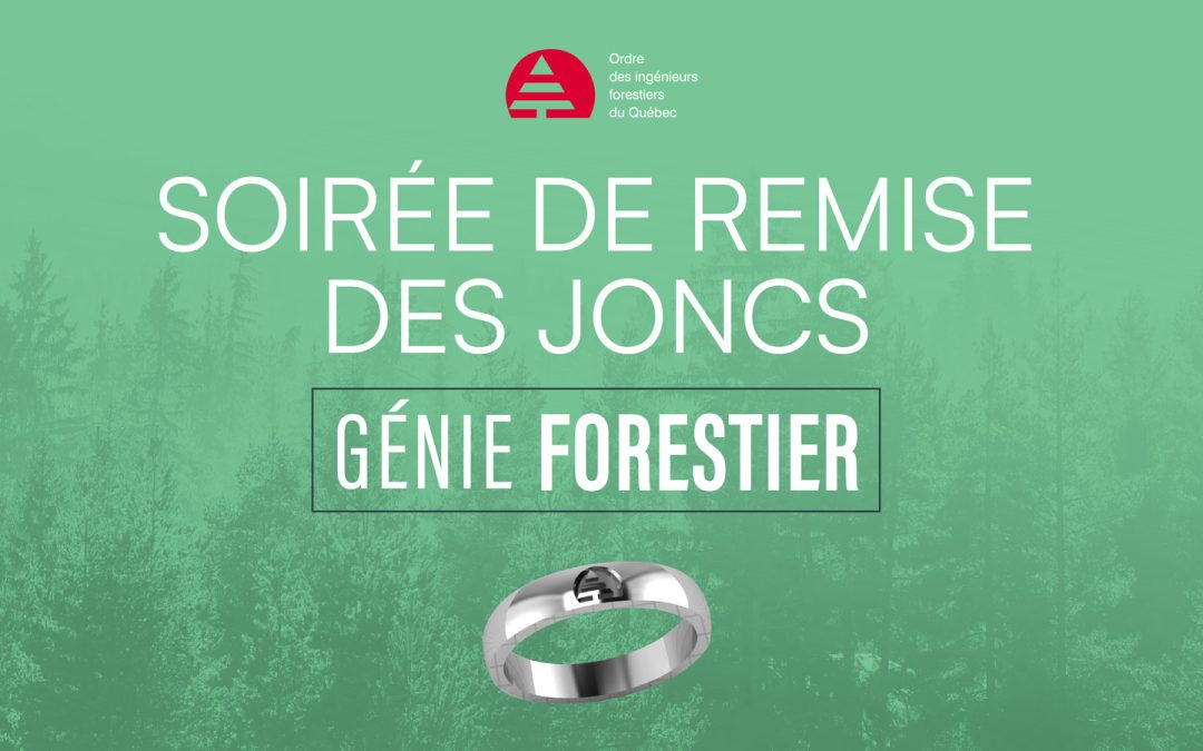 La traditionnelle Soirée de remise des joncs par l’Ordre des ingénieurs forestiers du Québec se tiendra le 27 mars prochain, à l’Hôtel Plaza de Québec.