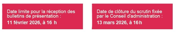 Les membres du CA sortants sont rééligibles. Les nouveaux membres du CA entreront en fonction immédiatement après la 1ère réunion du Conseil d’administration qui suit le dépouillement du vote.
