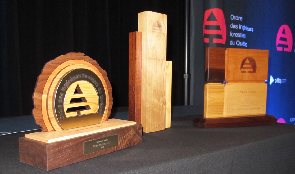 Chaque année, l’Ordre décerne trois distinctions à des récipiendaires reconnus par un groupe de cinq ingénieures et ingénieurs forestiers.